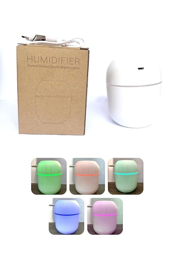 Improve air quality and create a calming atmosphere with this Mini USB Humidifier with Warm Lights. Designed to release a fine cool mist, it helps reduce dryness, improve breathing comfort, and keep skin hydrated. Featuring soft color-changing LED lights and ultra-quiet operation, it works perfectly as both a humidifier and a soothing night lamp. Compact, stylish, and USB powered—ideal for bedrooms, offices, travel, and everyday wellness.